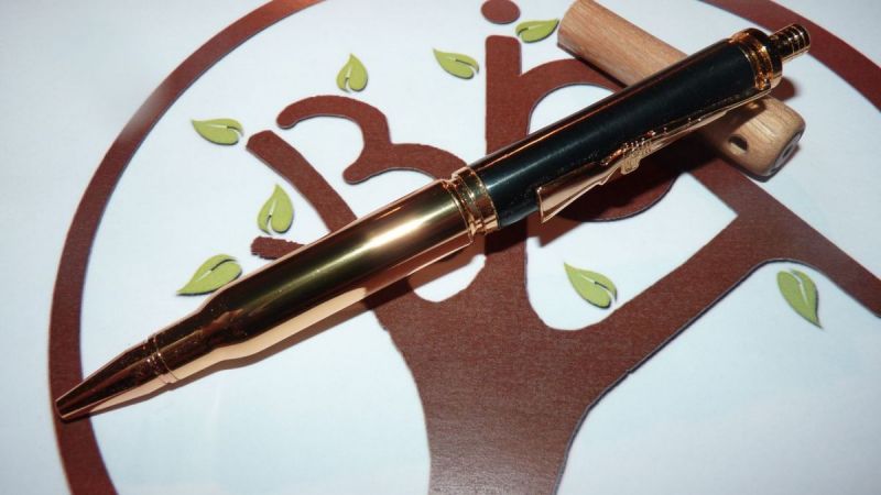 Stylo cartouche (roller) Stylo en forme de cartouche de fusil pour les chasseurs ou les amateurs d'armes à feu. Les recharges se trouvent en papeterie comme pour les autres stylos.
